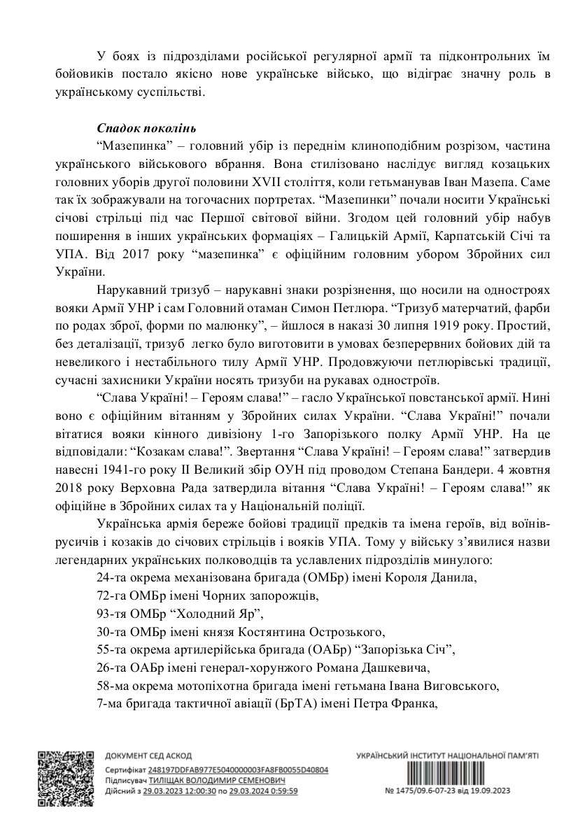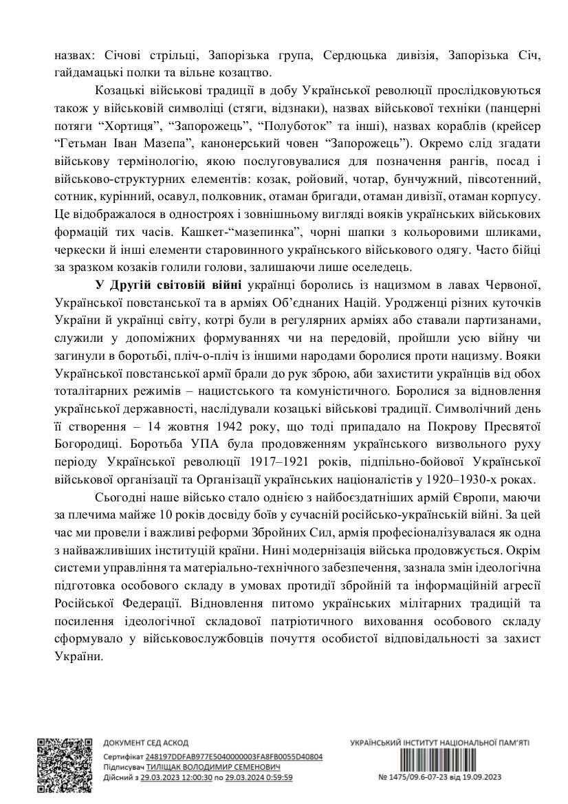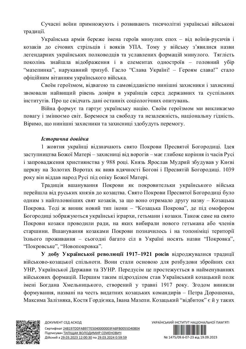 Козацькі традиції бережуть і розвивають сучасні захисники і захисниці України. Український інститут національної пам’яті підготував тематичні інформаційні матеріали до Дня захисників і захисниць.