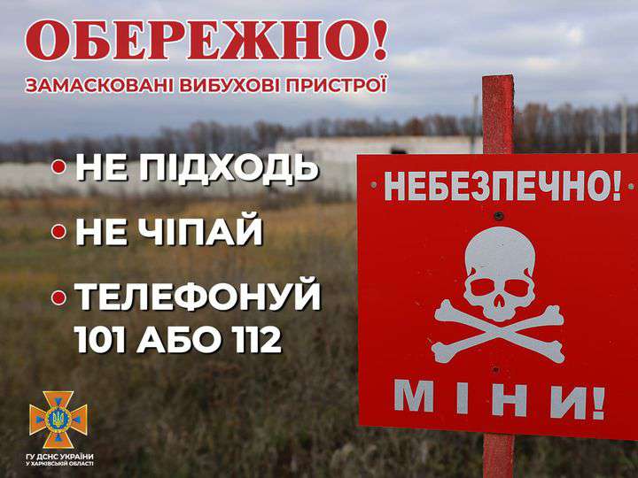 Увага! Висока мінна небезпека на Харківщині! Знайте і виконуйте правила мінної безпеки!