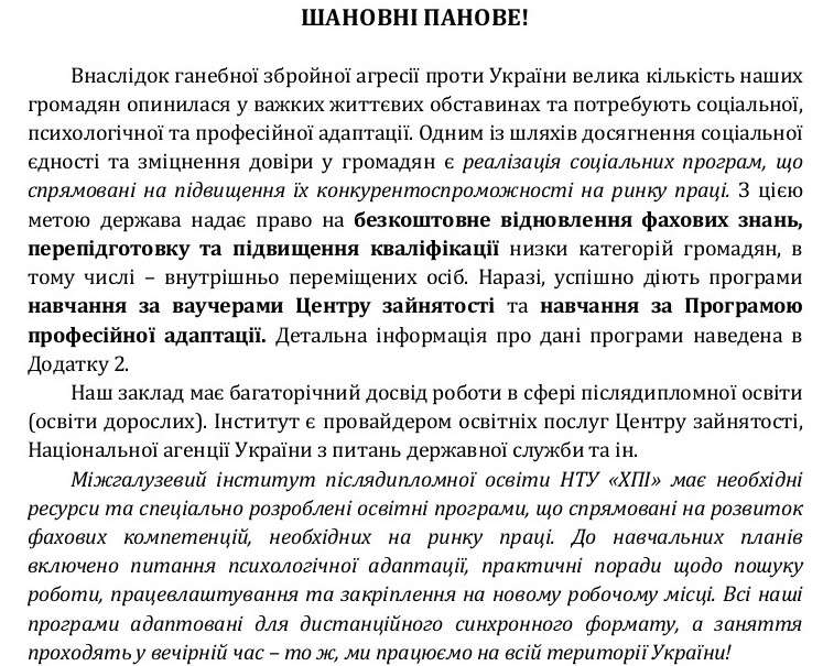 Міжгалузевий інститут післядипломної освіти національного технічного університету "Харківський політехнічний інститут" інформує