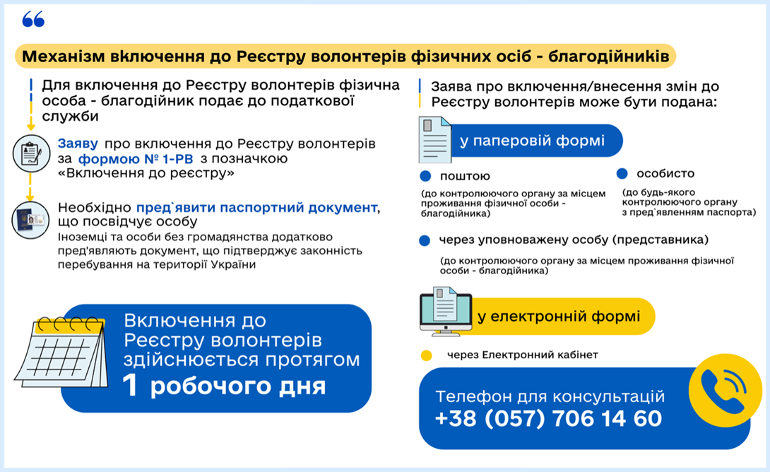 Механізм включення до Реєстру волонтерів фізичних осіб - благодійників
