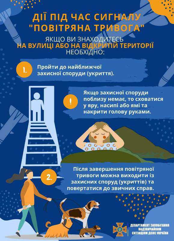 Тому нагадуємо, якщо звучить сигнал «Повітряна тривога!» негайно слідуйте до найближчого укриття. Якщо не встигли добігти до укриття негайно перейдіть у приміщення без вікон, скористайтеся правилом «двох стін».