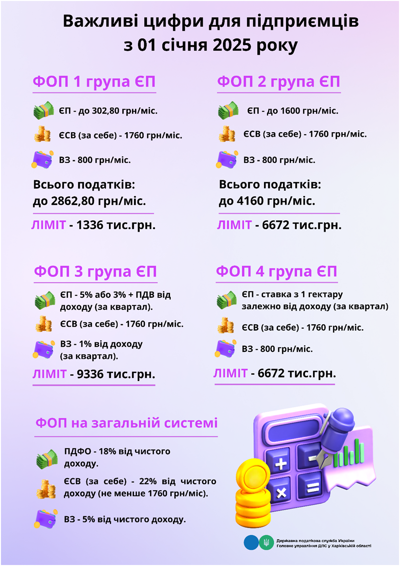 Важливі цифри для підприємців з 01 січня 2025 року