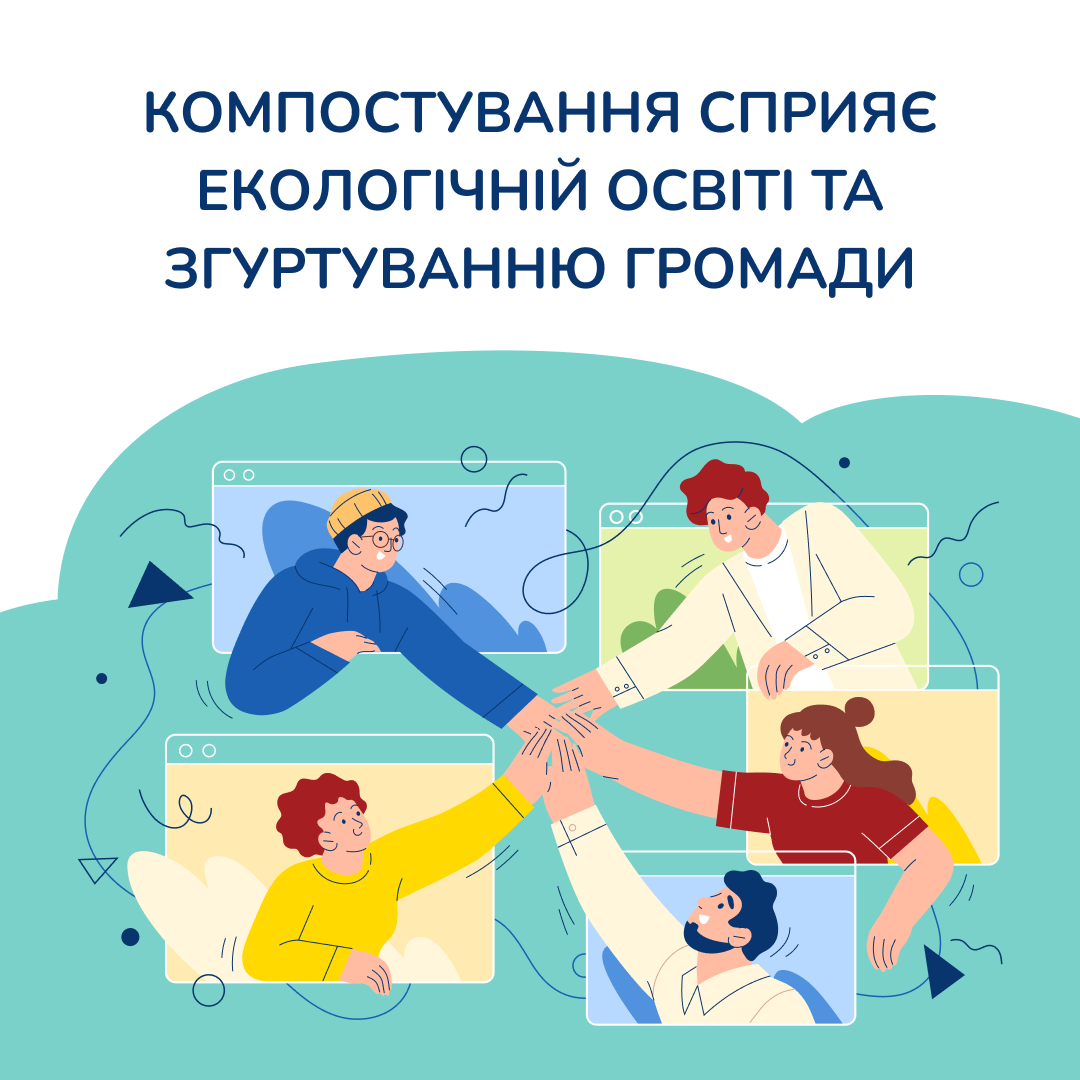 По-п’яте, компостування сприяє екологічній освіті та згуртуванню громади. Учасники програм компостування стають більш екологічно свідомими, активно залучаються до вирішення місцевих проблем, покращують санітарний стан своїх дворів та міст, а також підтримують розвиток культури роздільного збору відходів.