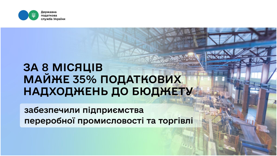 «За 8 місяців майже 35 % податкових надходжень до бюджету забезпечили підприємства переробної промисловості та торгівлі. Ці галузі впевнено тримають лідерство з початку року», – зазначила Леся Карнаух.