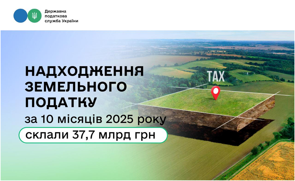 Платники Дніпропетровщини та Києва забезпечили понад третину всіх надходжень земельного податку за 10 місяців 2025 року.