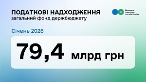 До загального фонду держбюджету у січні 2026 року надійшло 79,4 млрд грн (91,8 % плану) податків та зборів, які контролює ДПС. Про це на своїй сторінці у Facebook повідомила в. о. Голови ДПС Леся Карнаух.
