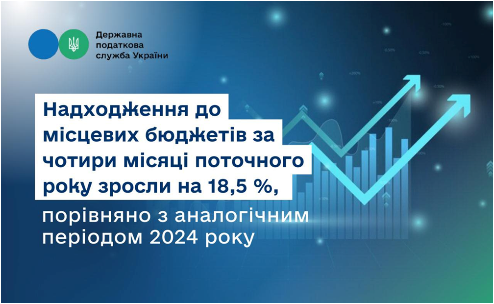 За чотири місяці цього року надходження до місцевих бюджетів зросли на 18,5 %