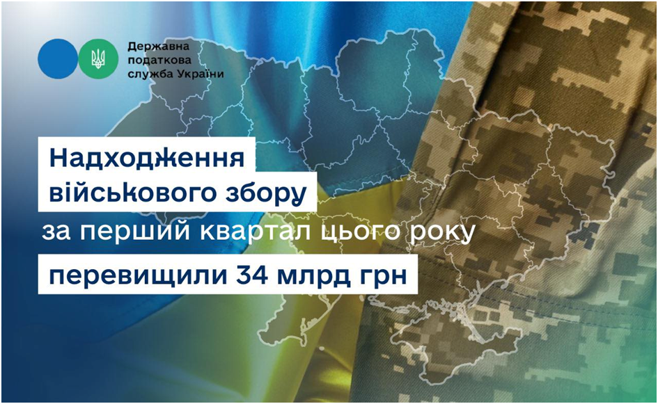 Надходження військового збору за перший квартал цього року перевищили 34 млрд гривень