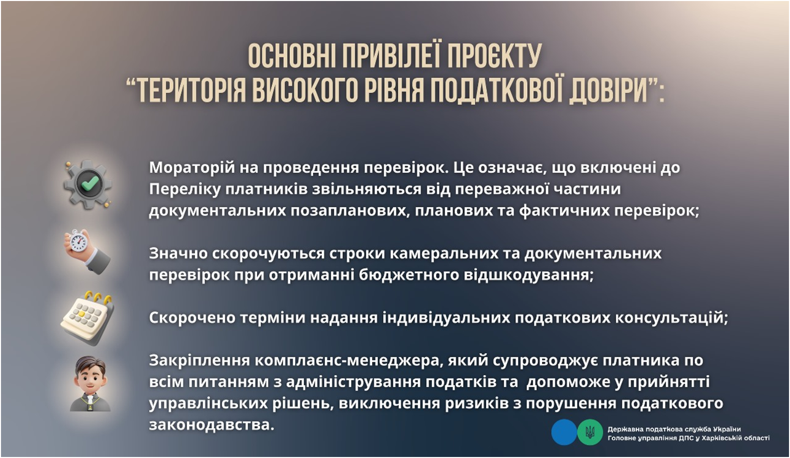 Основні привілеї проєкту "Територія високого рівня податкової довіри"