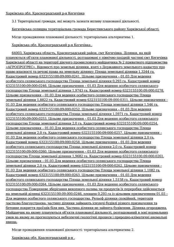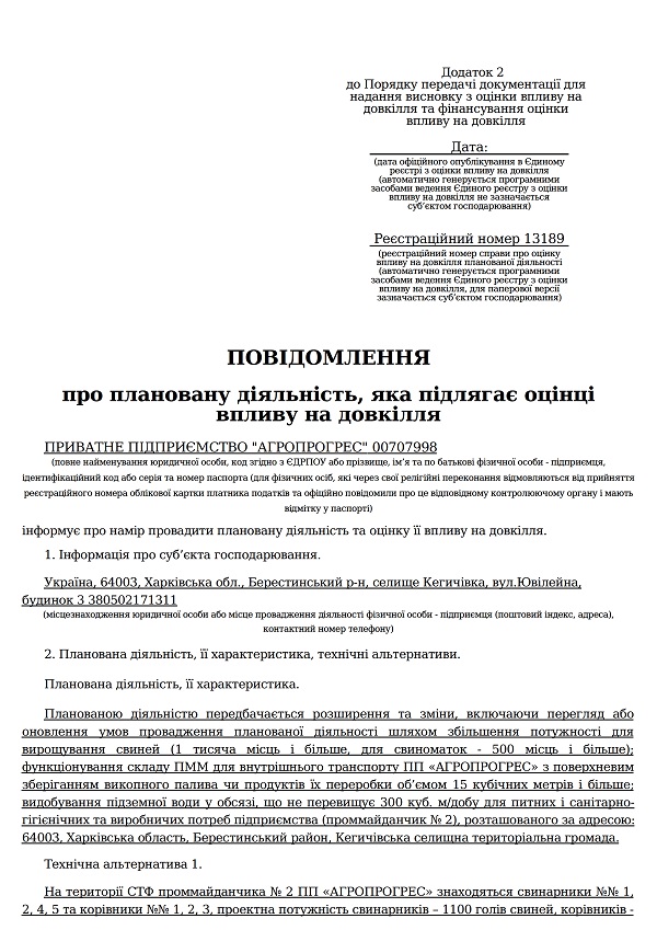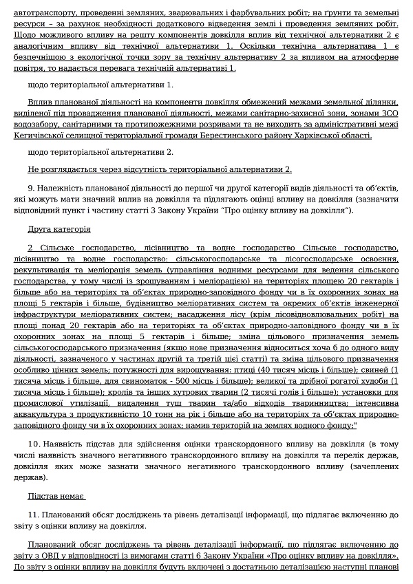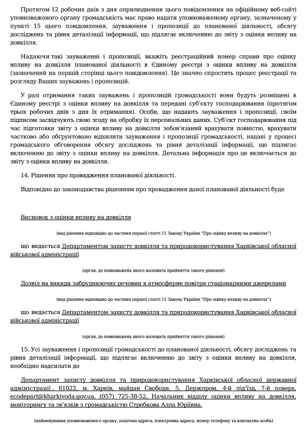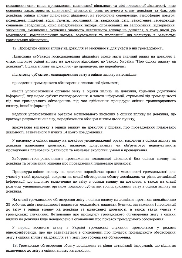 ПОВІДОМЛЕННЯ про плановану діяльність, яка підлягає оцінці впливу на довкілля