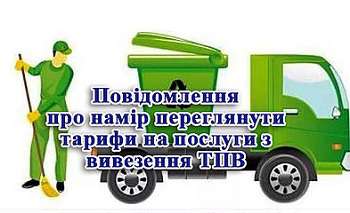 Повідомлення про намір встановлення тарифу на послуги із збирання та перевезення змішаних побутових відходів